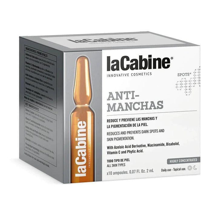 Reduce y previene las manchas y pigmentación con las ampollas Anti-Manchas. Su fórmula con ingredientes encapsulados dentro de un sistema de liberación inteligente y prolongada, permite que actúen en los diferentes niveles de las capas superficiales de la piel, para mejorar el tono, difuminar marcas persistentes e iluminar la piel, gracias a su complejo con Azeloglicine, Niacinamida, Alfabisabolol, Vitamina C y Ácido Fítico.