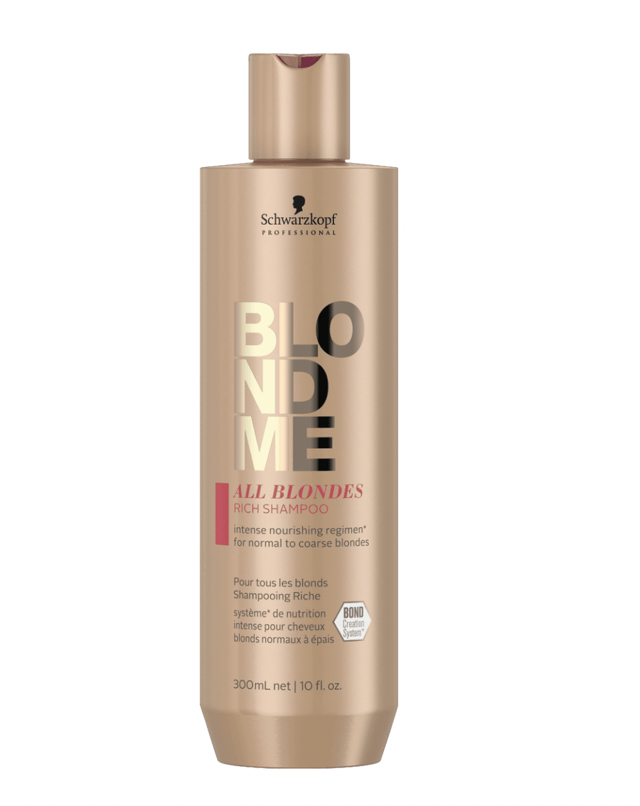 BLONDME Shampoo Enriquecido es un shampoo reparador que aborda las necesidades particulares del cabello rubio tratado con color. Esta fórmula rica y reabastecedora es adecuada para todo tipo de rubias.