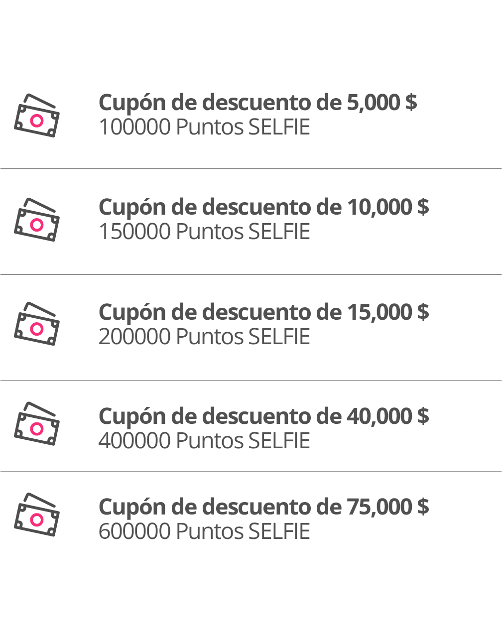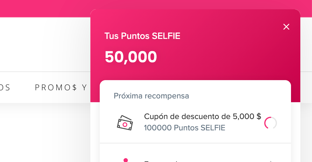 Puedes canjear si tienes 100.000 Puntos SELFIE o más. Para canjear:
